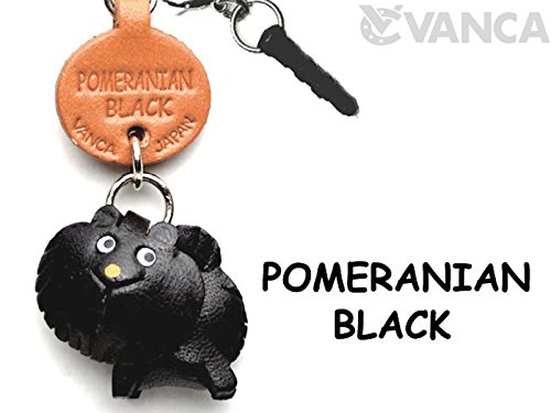 Pomeranian Black Leather Dog Earphone Jack Accessory / Dust Plug / Ear Cap / Ear Jack *VANCA* Made in Japan #47748