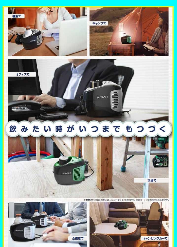 ●飲みたい時がいつまでもつづく!(蓄電池をご使用の際には、別売りUSBアダプタ、別売り接続コードが必要です)