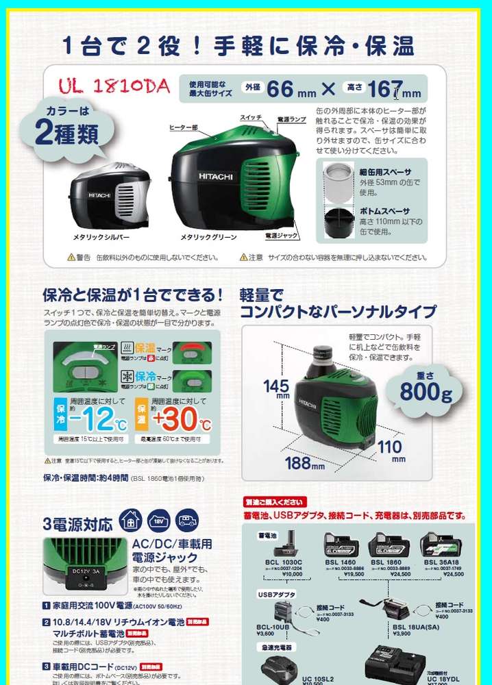 ●保冷/保温可能時間:約4時間(BSL1860使用時)