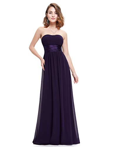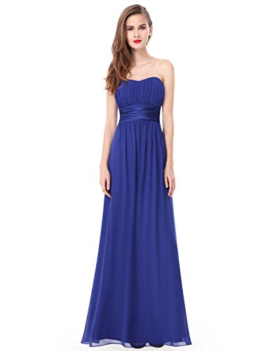 Beloved by brides and bridesmaids, this classic silhouette flatters nearly any body type. The strapless neckline features a subtle sweetheart shape and the satin empire waist slims the lower half of the body. While we think this is a great choice for bridesmaids, we could see this dress being worn to formal weddings as a guest, to prom, or any other evening party.