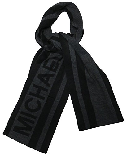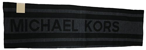 Michael Kors Mens Vertical Logo Winter Knit Scarf Black/Grey