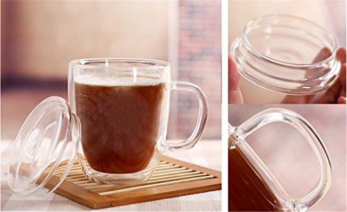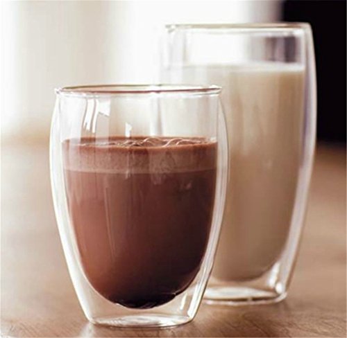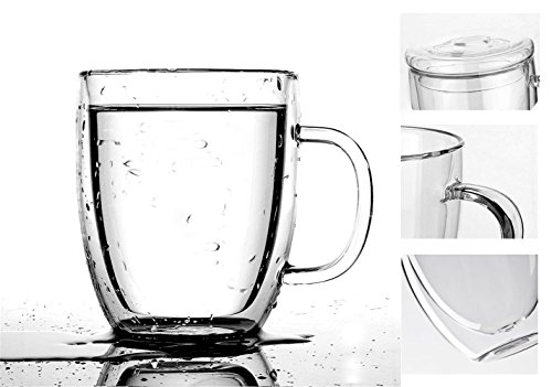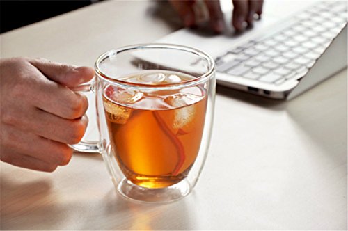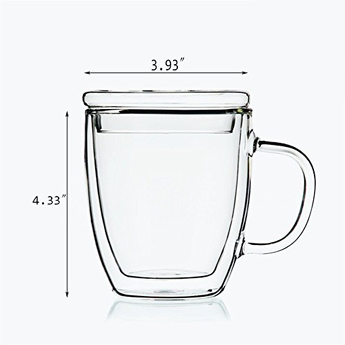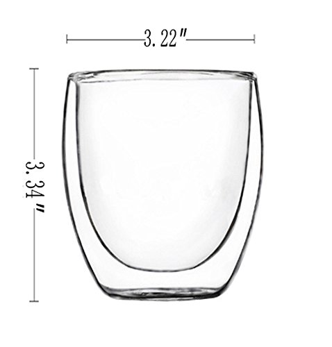 -. Feature : Size: Measures 2.16" wide and 1.57" tall / Double-walled design borosilicate glass. / Durable and good heat-resisting teacup does not get hot to the touch. / Exquisite design perfect for tea and espresso lovers.
