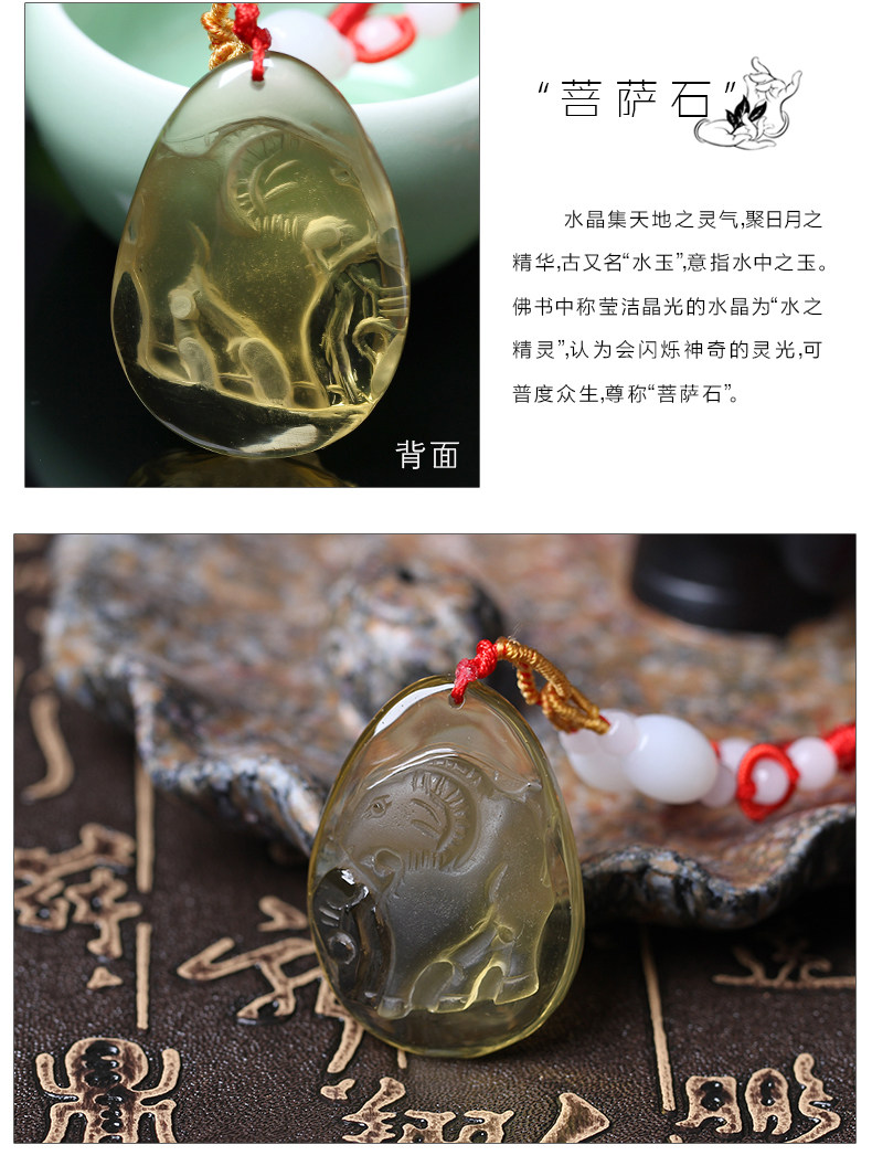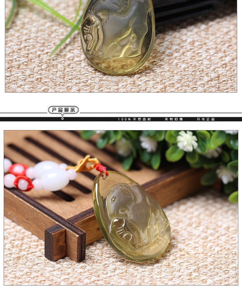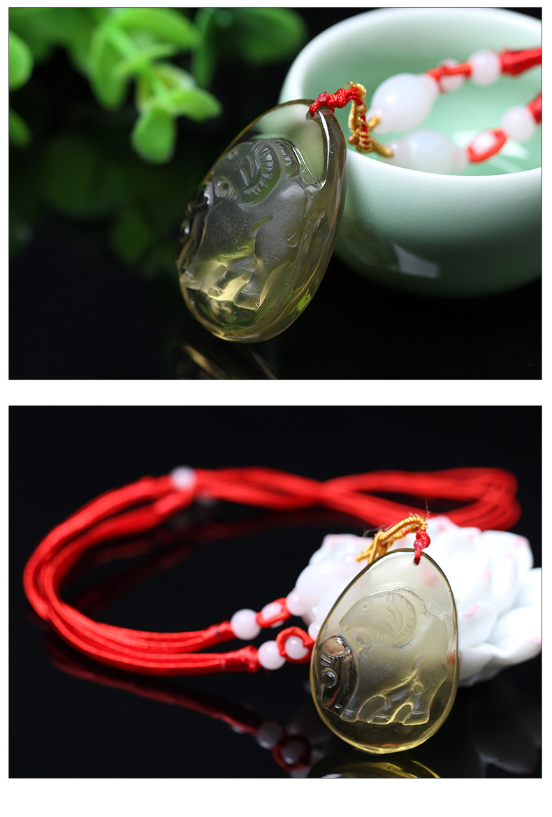 开光黄水晶十二生肖羊开运物未奇岁辰吊坠
