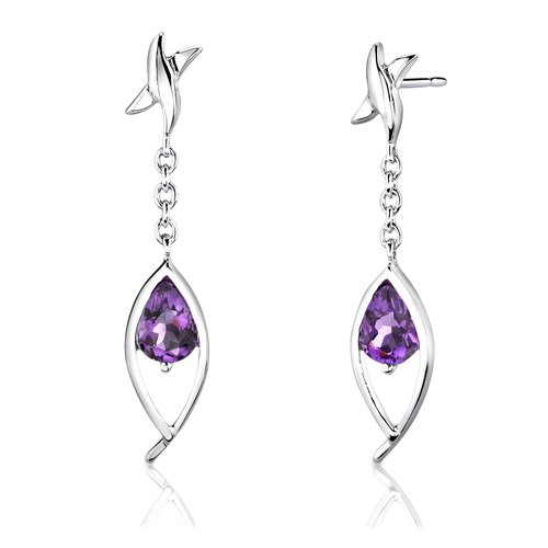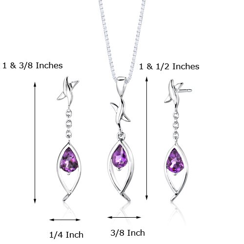-. Title : Amethyst Pendant Earrings Necklace Sterling Silver Rhodium Nickel Finish Pear Cut 1.75 Carats