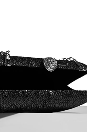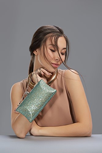 -. Feature : Party clutch handbag with sequins and glitter mesh all over the surface, a rhinestone studded top clasp, a removable chain strap and a fully lined velvety interior. Perfect addition to your evening, formal, prom or cocktail outfit. / Strong and reliable clasp closure keeps your belongings safe. All metal parts are resistant to rusting, corrosion, oxidation and tarnishing. The colors stay strong, do not fade with time and will not leave marks on you clothing. / Keep your hands free! The length of the drop-in chain strap (47") allows you to wear the clutch purse as a crossbody or shoulder bag that hits at the hip. / The evening purse fits most models of cell phones including naked iPhone 6 Plus / iPhone 7 Plus / Samsung S7 Edge. Approximate measurements of the clutch: 7.3" (L) x 3.7" (H) x 1.4" (W). / Buy with confidence! All our handbags have 100% 30 days money back guarantee. Top quality backed with exclusive lifetime warranty!