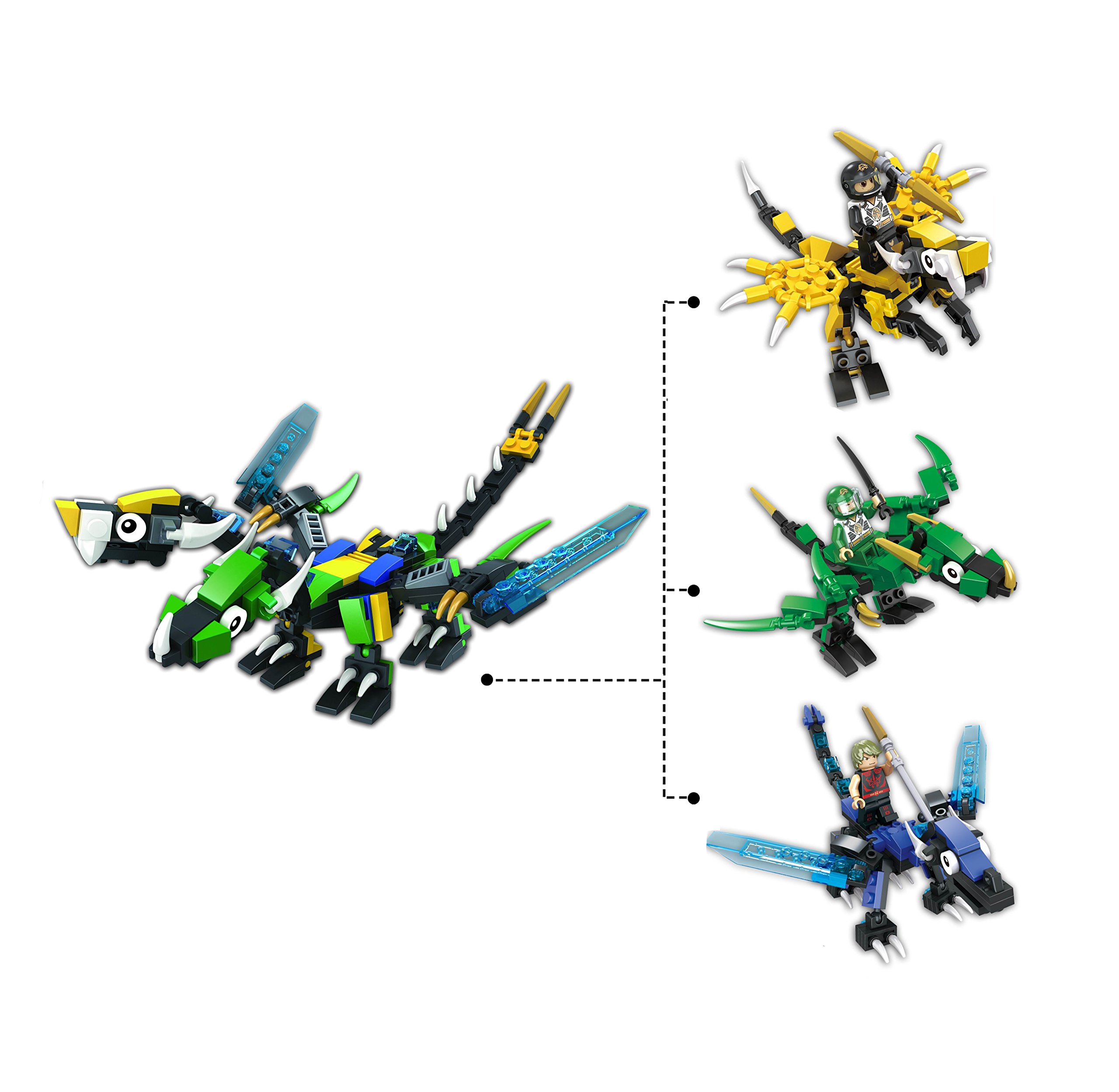 Not only can small robots become fighter aircraft, but also big dinosaur fighters can be assembled with triplets.