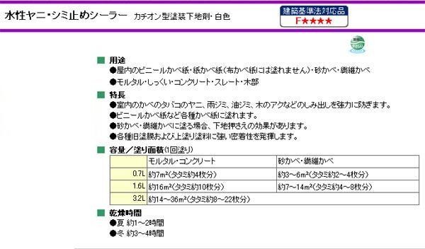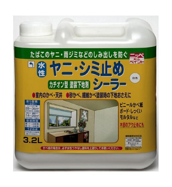 | 室内のかべのタバコのヤニ、雨ジミ、油ジミ、木のアクなどのしみ出しを強力に防ぎます。 |