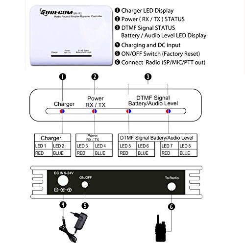 -. Binding : Electronics -. Brand : WishRing -. EAN : 0710749699105 -. Feature : The SR-112 is a multi-function voice recorder device that connects to virtually any handheld, base, or mobile radio. It features exceptional voice recording quality and higher capacity than any other comparable device on the market. / The SR-112 s voice mail function operates like a telephone answering machine, allowing users to record messages for later retrieval. Up to 3 incoming messages can be recorded, total recording message up to 180sec / A simplex repeater records incoming transmissions and retransmits them on the same frequency. This has the effect of doubling the time required to transmit a message, while a traditional repeater typically costs thousands of dollars and might be semi-portable at best, / a simplex repeater can be set up with a single handheld radio and operated from batteries. This makes it perfect for disaster response, home or campground use, and any place where radio range needs to be extended but the cost and complexity of a traditional repeater can't be justified.Auto message send system 15/30/45 minutes setting / 3 of message box for record - Auto Message send out at 15/30/45mins -Up to 180 seconds total recording time -DTMF remote control for all functions -. Label : Sunkin Global Trading Company -. Manufacturer : Sunkin Global Trading Company -. MPN : SU-114915 -. PackageQuantity : 1 -. PartNumber : SU-114915 -. ProductGroup : Car Audio or Theater -. ProductTypeName : TWO_WAY_RADIO -. Publisher : Sunkin Global Trading Company -. Studio : Sunkin Global Trading Company -. Title : Surecom Sr-112 Simplex Repeater Controller with Kenwood Radio Cable -. UPC : 710749699105