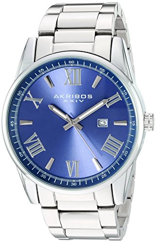 -. Title : Akribos XXIV Men's Quartz Silver-Tone Case with Silver-Tone Accented Blue Dial on Silver-Tone Stainless Steel Bracelet Watch AK936SSBU