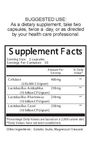 Studio : Natures Power Publisher : Natures Power Binding : Health and Beauty Product Description A powerful blend of natural enzymes that aid in ridding the body of yeast overgrowth and other bacterial problems. Through a precise blend of Cellulase, Lactobacillus Acidophilus, Lactobacillus Rhamnosus, and Lactobacillus Casei strains of friendly bacteria, the body can naturally control bacterial problems and maintain healthy levels. In order for the Lactobacillus strains to be kept alive and functioning, Inulin was also added as a food source, thereby eliminating the need for refrigeration. 0