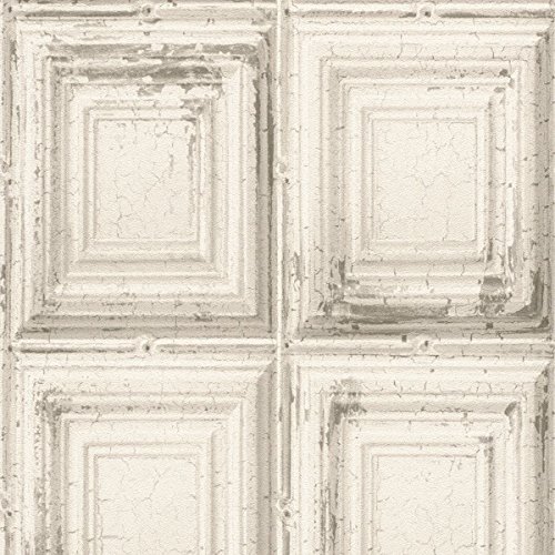 -. Title : Rasch Distressed Wood Panels Wallpaper - White 932614