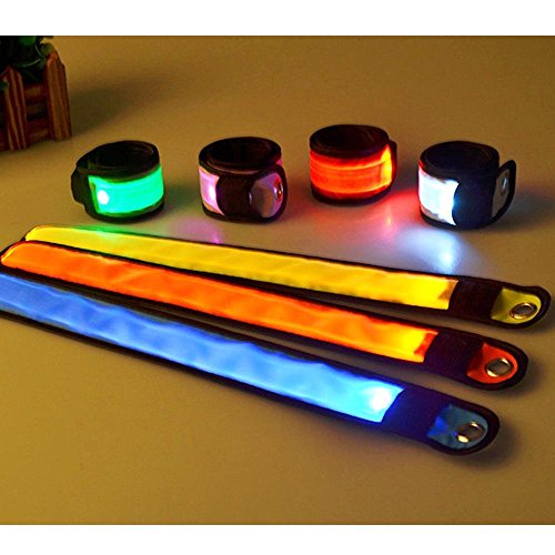 IBES.Vbility™ Night Safety LED Sports Saftey Flashing Reflective Armband Light up Slap Wrap Bracelets Wrist Bands for Running - Pack of 2pcs (Blue)
