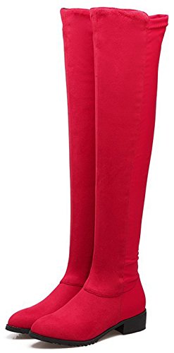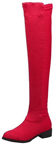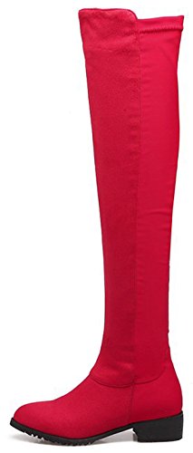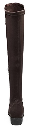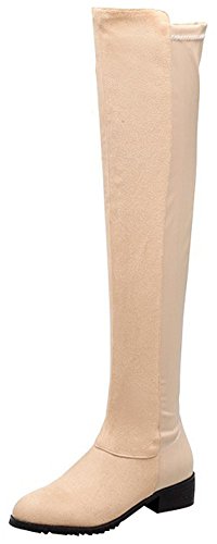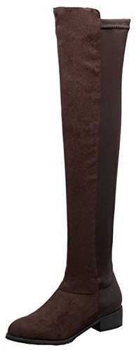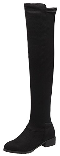 (Mofri)/Women's/Boots/DIRECT FROM USA/Mofri Women's Trendy Block Low Heel Round Toe Faux Suede Side Zipper Above The Knee Boots