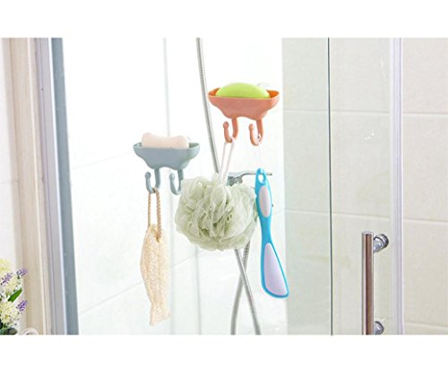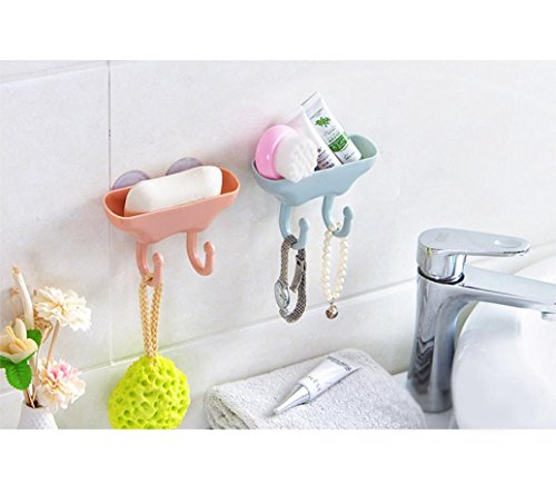 -. Title : Oksale Strong Sucker Bathroom Plastic Double Hook Wall Suction Detearing Draining Racks Storage Box