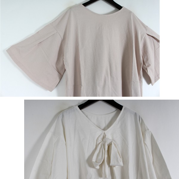 | サイズ | Mサイズ | | 実寸 | 着丈:56cm、肩幅:54cm、バスト:52cm、袖丈:25cm、袖口:30cm、裾巾:55+cm | | 素材 | 綿 100% | | 生産国 | 中国 | | 裏地 | なし | | 生地の伸縮 | なし | | 生地の透け感 | なし | | カラー | 01. ホワイト 02. ピンク 03. チャコールグレー 04. ネイビー | | 注意点 | ▼綿混合商品は洗濯時に多少縮む事がございます。 ▼パソコン、モニター等の環境により、実際の商品素材カラーが多少異なる場合が御座います。予めご了承ください。 ▼お手数ですが必ずお買い物ガイドを一読頂いてからご利用いただきますようお願い申し上げます。 | |