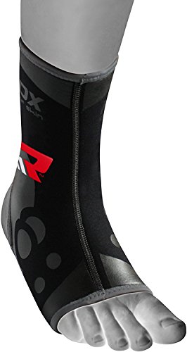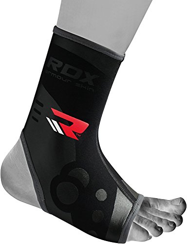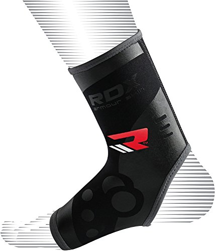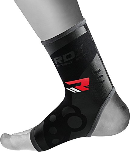 -. Binding : Misc. -. Brand : RDX -. Feature : RDX Neoprene/Silicon Ankle Support features new unique silicon innovation technology / Compression and support and to promote faster recovery from injury / The Silicon design follows the contours of the tendons and ligaments to Provide additional support and compression to the ankle / Features technology to retain heat and increase blood flow and oxygen to soft tissue injuries to aid recovery / Technology removes excess perspiration and allows the skin to breathe. -. IsAutographed : 0 -. IsMemorabilia : 0 -. Label : RDX -. Manufacturer : RDX -. ProductGroup : Sports -. ProductTypeName : SPORTING_GOODS -. Publisher : RDX -. Studio : RDX -. Title : RDX Neoprene Ankle Brace Foot Guard Achilles Tendon Pain Support MMA Pad Protector (This is Sold as SINGLE ITEM)