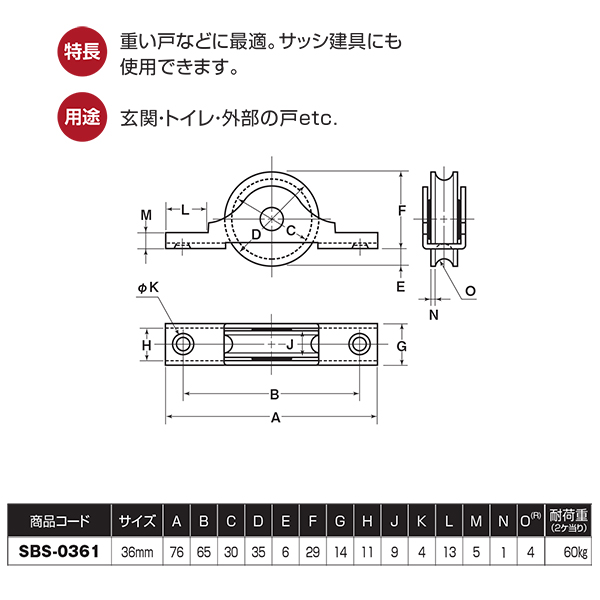 ●重い戸などに最適。サッシ建具にも使用できます。用途:玄関・トイレ・外部の戸etc.