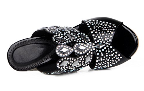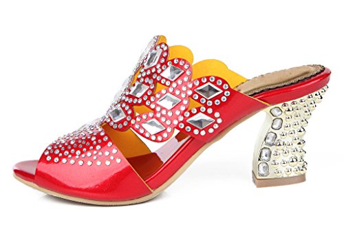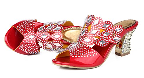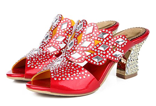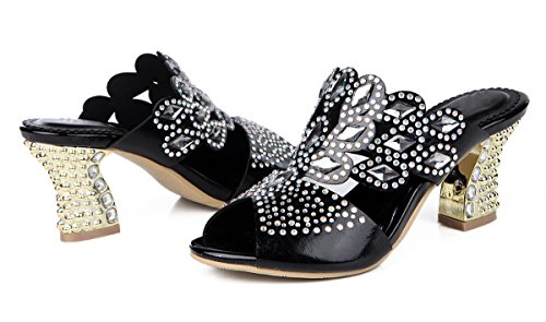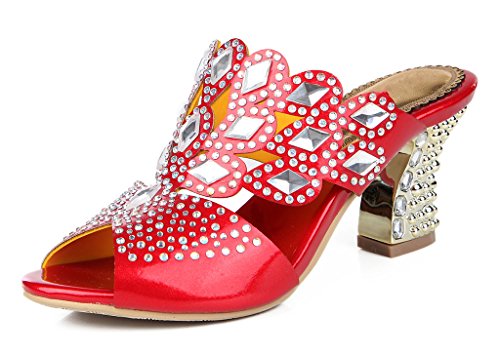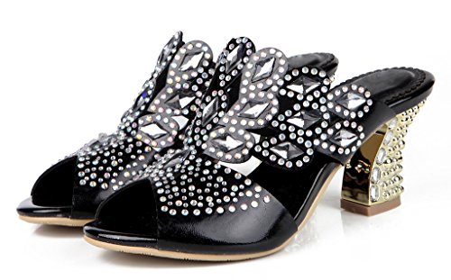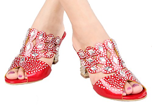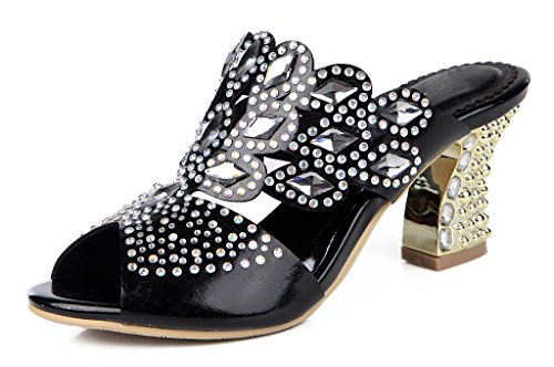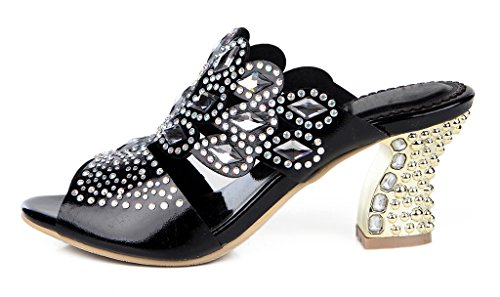 (jiandick)/Women's/Sandals/DIRECT FROM USA/Jiandick Womens Rhinestone Slingback Slide Sandals Open Toe Dress Chunky Heel