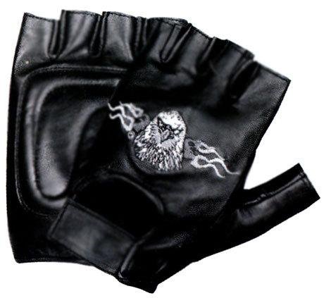 -. Title : Xelement XG352 Mens Black Flaming Eagle Leather Fingerless Gloves