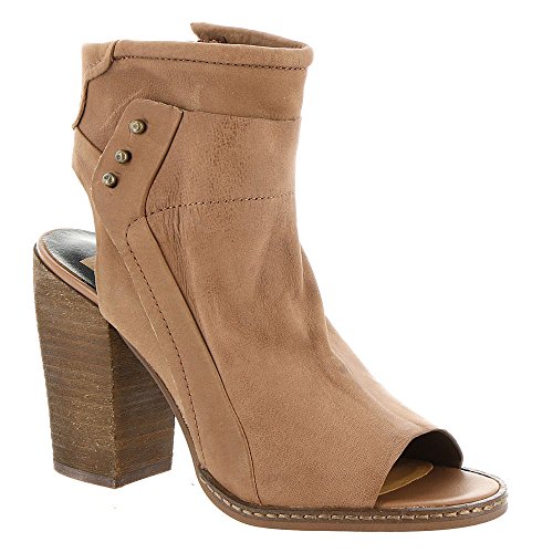 Product DescriptionThis stylish bootie by Dolce Vita features a leather upper, side zip closure and a open heel and toe,115697,Leather upper,This shoe has a man made lining and sole and a stacked block heel,Heel height: 3 3/4",,,0