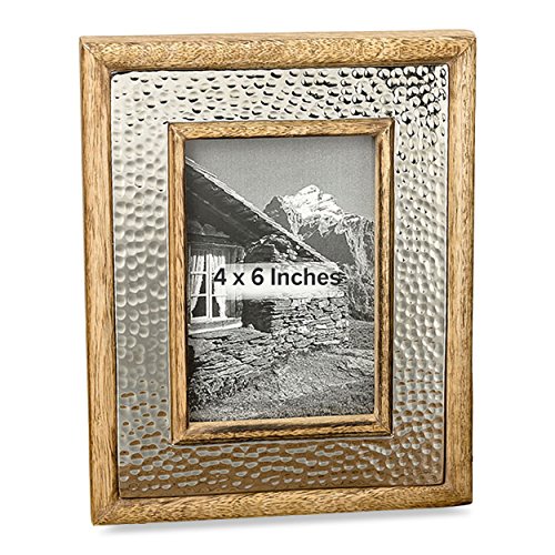 The Crosby Street Rustic Photo Frame, Hammered Silver Metal Framed by Natural Mango Wood, 4 x 6 Picture Window, Overall Size is 7 ½ x 9 ½, By Whole House Worlds