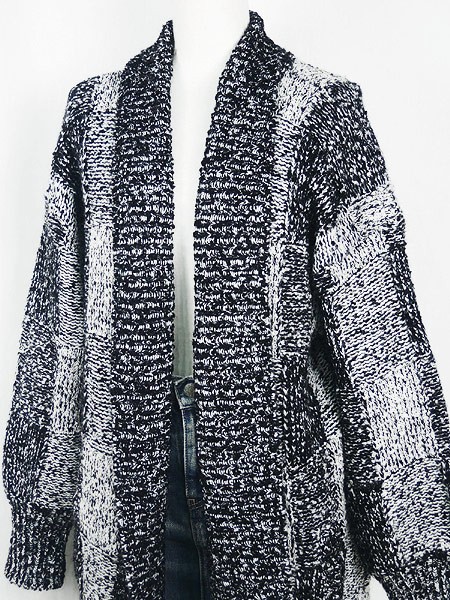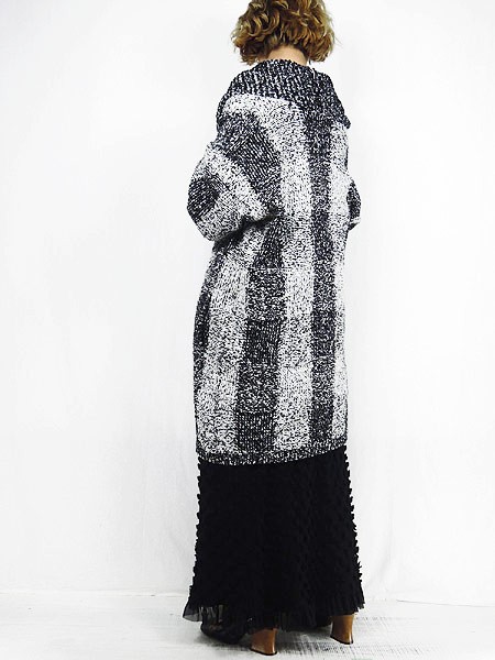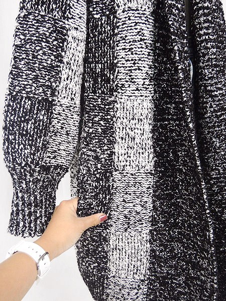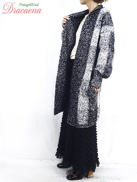 Ladies ブランド- カラー黒・白 メール便不可 コンディション★★★ モデル身長158cm 素材アクリル100% 表記サイズS 実寸サイズ 着丈 89 cm 身幅 59 cm 肩幅 63 cm 袖丈 53 cm ※ウエスト・ヒップ以外は平置き採寸