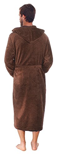 Men's Hotel Fleece Terry Pocketed Bathrobe Robe with Hood, Brown