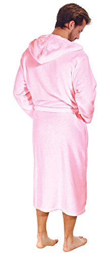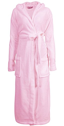 Women's Hotel Fleece Terry Pocketed Bathrobe Robe with Hood, Pink