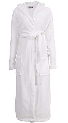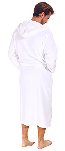 Men's Hotel Fleece Terry Pocketed Bathrobe Robe with Hood, White