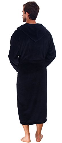 Men's Hotel Fleece Terry Pocketed Bathrobe Robe with Hood, Navy Blue