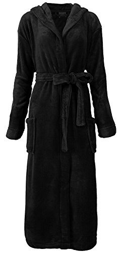 Men's Hotel Fleece Terry Pocketed Bathrobe Robe with Hood, Black