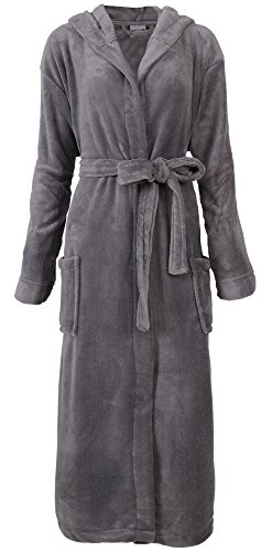 Men's Hotel Fleece Terry Pocketed Bathrobe Robe with Hood, Grey