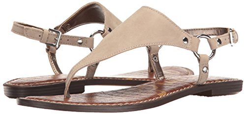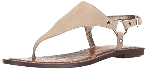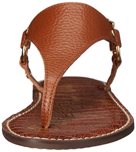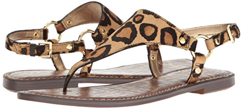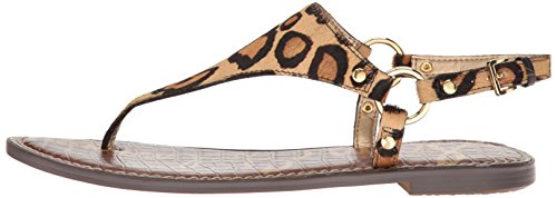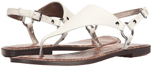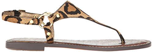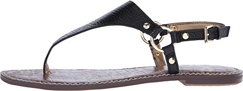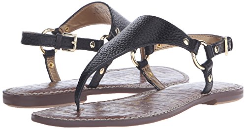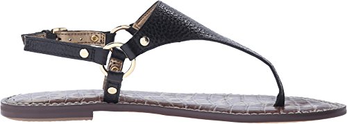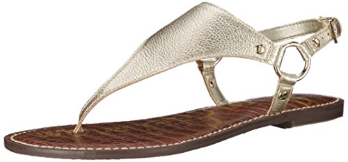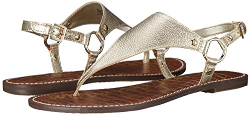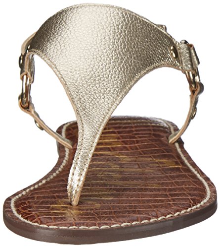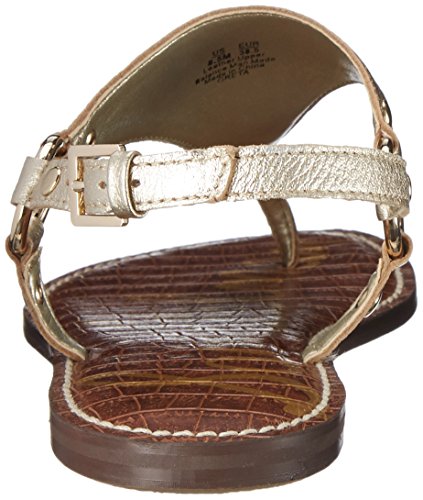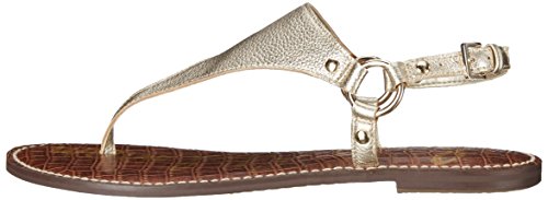 Thong sandal with triangle vamp featuring gold-tone studs and hardware harness rings