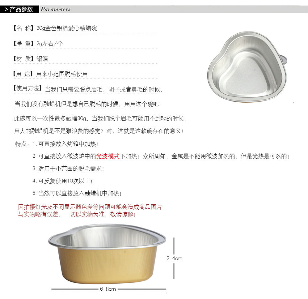 脱毛蜡豆融蜡小碗 30g金色心形铝箔融蜡小碗 wax pot bow
