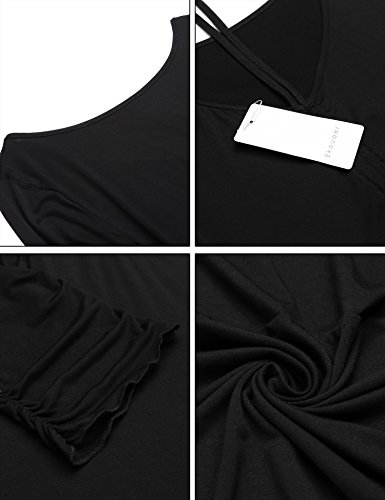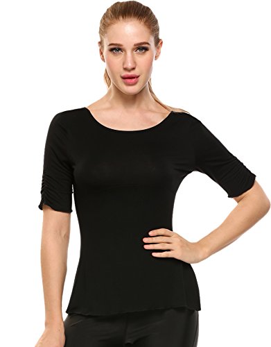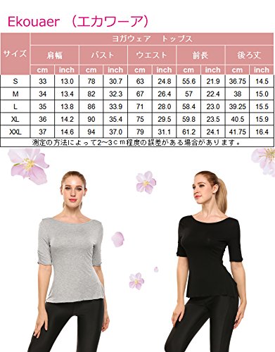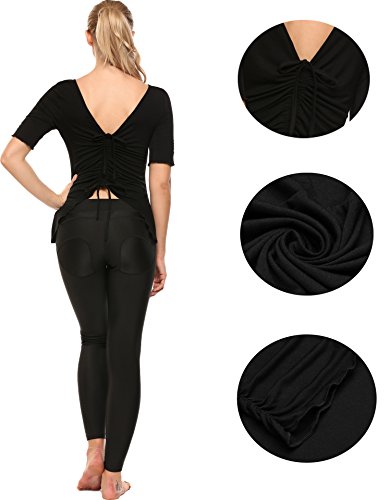 Ekouaer (《에카와아》) 요가 웨어 톱스 백 레스 블라우스 반소매 T셔츠 무지 리본부 컷소우 가디건 신축 휘트니스 (M,블랙)