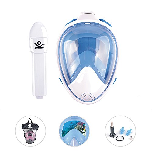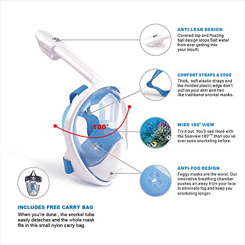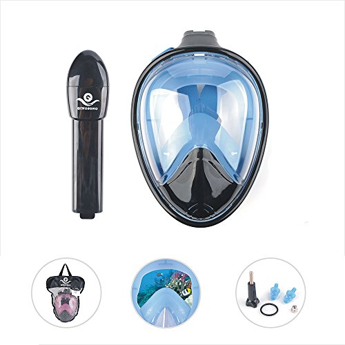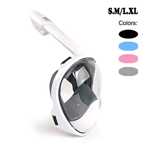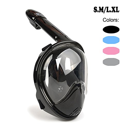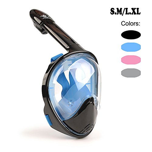 Full Face Snorkel Mask 180° Panoramic View Snorkeling Diving Mask Goggle Anti-Leak Anti-Fog Easy Breathing Underwater Surface Scuba Gear with Adjustable Head Straps for Adults Youth Kids