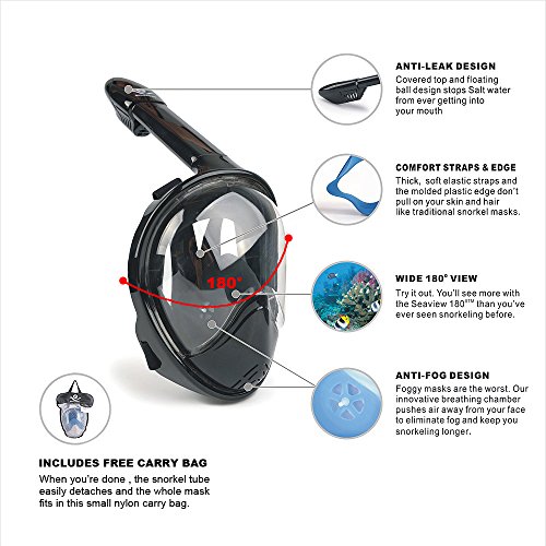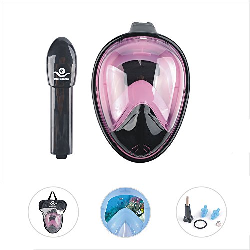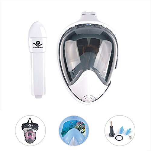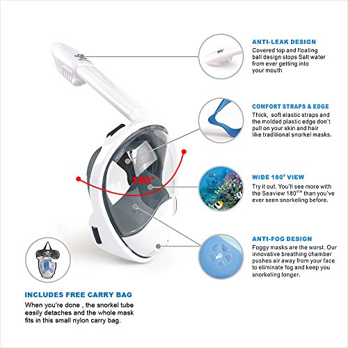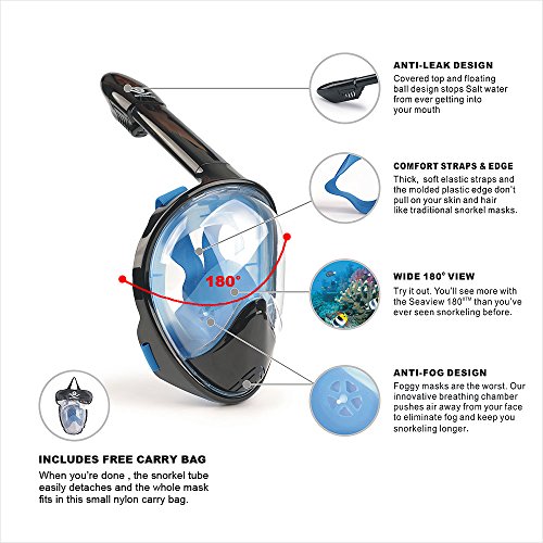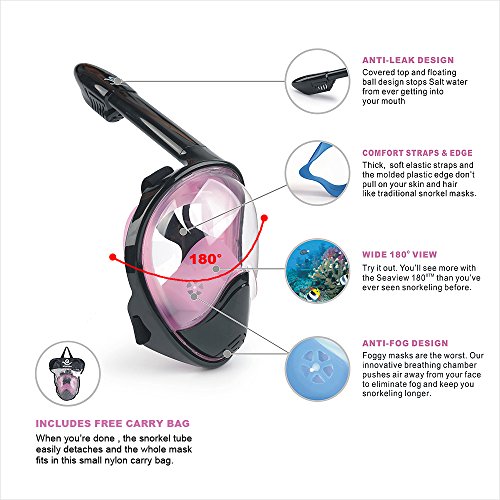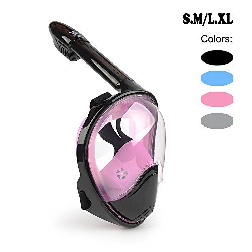 Full Face Snorkel Mask 180° Panoramic View Snorkeling Diving Mask Goggle Anti-Leak Anti-Fog Easy Breathing with Adjustable Head Straps for Adults Youth Kids