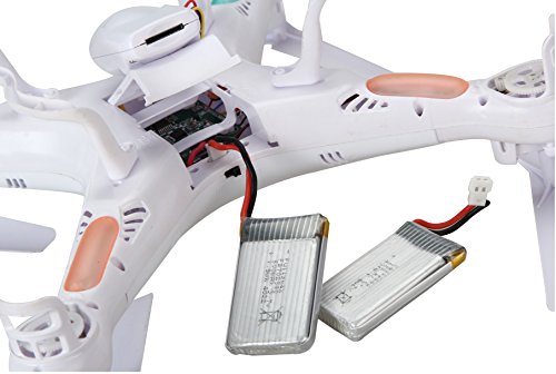 - Feature : Equiped with NEW HEADLESS MODE for any level of player. / Comes with bonus stock battery (3.7v 500 mah) for longer flight time. Total of 2 batteries. / A key 360° 4-ways flip(left,right,forward,backward), continuous roll for perfect action and wonderful performance. / Left / Right hand throttle mode can be changeable by the transmitter (Mode1 or Mode2) / Range: About 30-50 Meters. Battery run time: About 7-9 minutes. Charging Time: : about 60 minutes