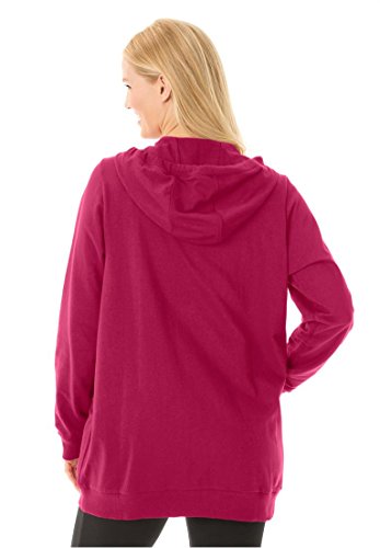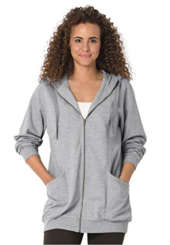 -. Binding : Apparel -. Brand : Woman Within -. Department : womens -. Feature : relaxed, cozy fit / 30" length falls to upper thigh / hooded collar / long sleeves with ribbed cuffs & hem / full zip front -. Label : Woman Within -. Manufacturer : Woman Within -. ProductGroup : Apparel -. ProductTypeName : SWEATER -. Publisher : Woman Within -. Studio : Woman Within -. Title : Women's Plus Size Zip Front Tunic Hoodie