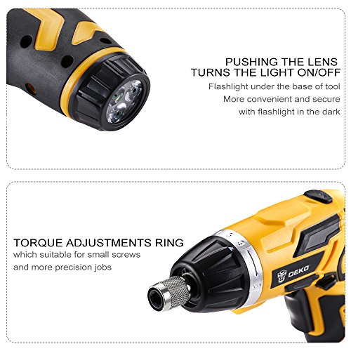DEKO 3.6V Cordless Electric Screwdriver Household Lithium-Ion Battery Rechargeable Drill/Driver Power Gun Tools with LED Light (BMC)