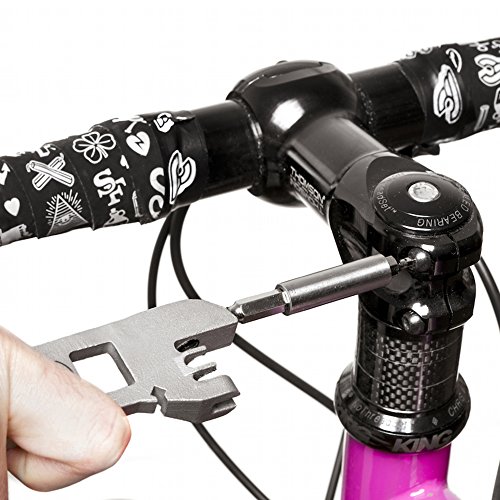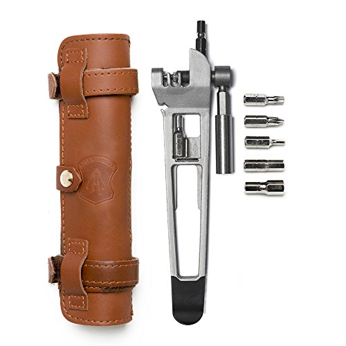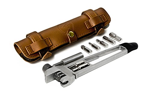 Studio : Full Windsor Publisher : Full Windsor Product Description Featuring a chain breaker with a tool grade stainless steel pin. The Breaker uses the tool bit extender as a handle, giving you the functionality of a workshop chain breaker in a multi tool. A magnetic tool bit slot is located in the tool's end allowing the tool to be used like a screw driver. The Breaker is compact and fits nicely into a leather and recycled inner tube pouch. The Breaker is cast from stainless steel using a loss wax casting process and then is tool hardened. It is currently Patent Pending. The tool weighs just 100g/3.5oz and magnetically houses 2 tool bits inside it's structure. While the full tool pouch weighs just 185g/ 6.5oz. The Breaker features: Chain Breaker with tool hardened stainless steel pin (replaceable) Tool hardened Stainless Steel body Glass filled nylon tyre lever with a stainless steel core Spoke key 3,4,5,6,8mm hex tool bits Philips head screw driver (PH2) T25 torx bit Tool bit extender Bottle opener Leather (jet black or burnt brown) and recycled inner tube pouch 0