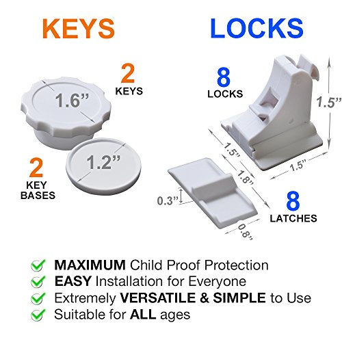 -. Title : Safety Magnetic Cabinet Locks 8 Locks & 2 Keys for Drawers, Cabinet Doors - Non-Destructive, Drill Free Baby / Childproof Magnetic Locking System