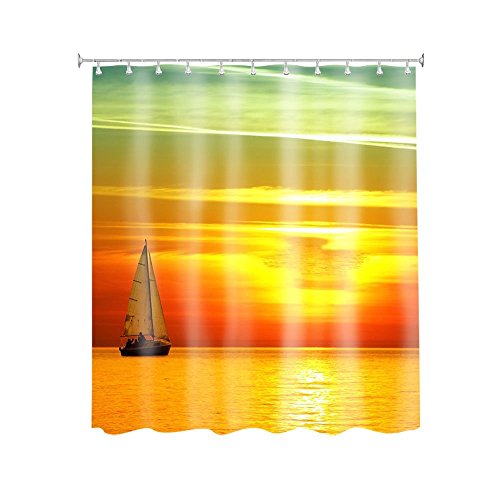 Sailing Boat In The Sunset Customize Waterproof Polyester Fabric Bathroom Shower Curtain 66*72 Inch