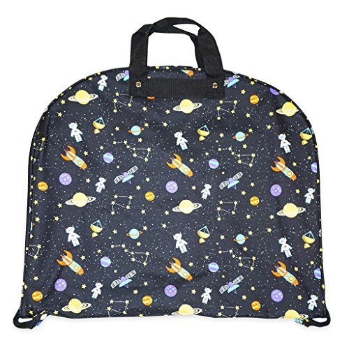 Product Description Take your dress clothes with you confidently on vacation with this stylish garment bag! This piece of lightweight luggage is great for jet setters and can be used for a quick, close by staycation or for a weekend excursion to your favorite retreat. Made out of durable 600 Denier Polyester fabric in a chic print. This garment bag folds in half and can be hung by its metal hook. The interior of this bag features multiple zipper pockets to hold shoes and accessories. Perfect for transporting cheer uniforms or theatre costumes to and from while keeping them clean and wrinkle free! Organize your closet and keep delicate, high quality items neat and pristine. 0