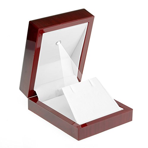 Geff House Cherry Wood Style Plastic Pendant Gift Box with LED Lights (White Interior)
