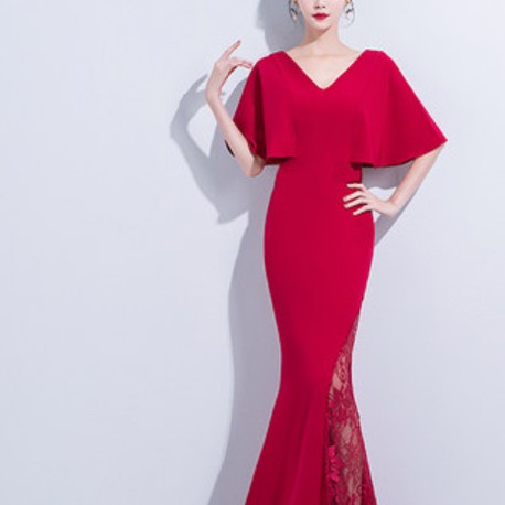大胆なスリットに上品なレースがあしらわれた