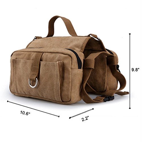 -. Feature : High quality durable 12oz canvas, provide a better holding for your dog and do not hurt fur / Vintage style design makes your dog fashionable, perfect for traveling or everyday use / Perfect 3 adjustable straps and neck circumference, breathable harness bring your dog comfort, the pack handle are NOT for lifting up your dog / Two main zipper side pockets with pouch, provide room for small items. / Size(L*W*H): 27*5.5*25cm / 10.6"*2.2"*9.8"