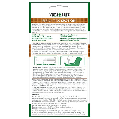 Studio : Vet's Best Publisher : Vet's Best Binding : Misc. Product Description For over 30 years, Vet's Best has blended natural ingredients that work together to comfort and protect your pet. Vet's Best Flea and Tick Spot-On for large dogs is great for monthly protection from fleas and ticks. 0