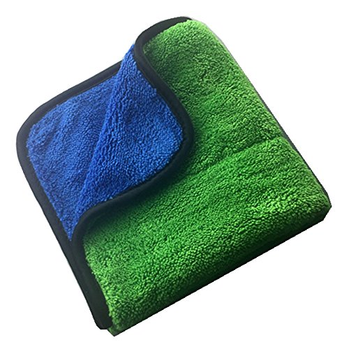 M-S Microfiber Car Cleaning Towels 700gsm Ultra Thick Cars Buffing Cloths Absorbent Car Drying Auto Detailing Towel (16"x16" ) Blue+Green (1 PCS)