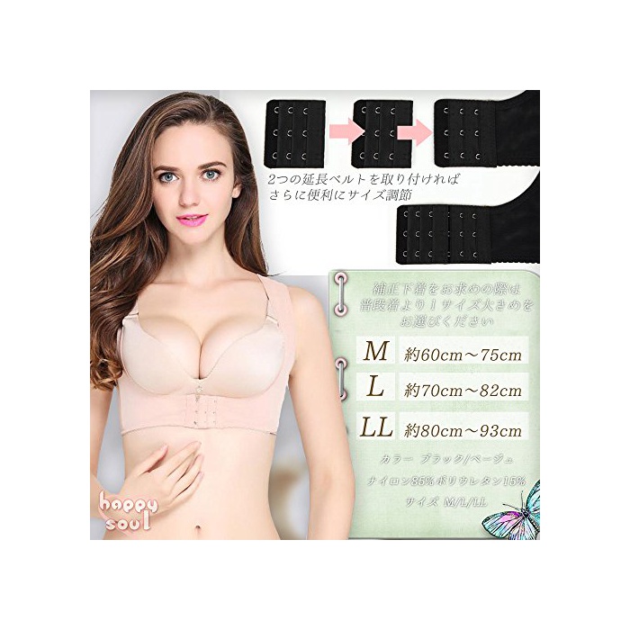 원본상품명: happy soul バストアップ 矯正インナ? 背中スッキリ 通?性?群 メッシュタイプ 幅?X型ベルトで下からしっかり支える アンダ?サイズ調整 延長 フック付?